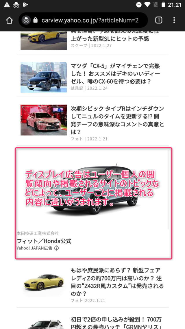 ディスプレイ広告は、正確には「コンテンツ連動型広告」とカテゴリ分けされる広告メニューです。