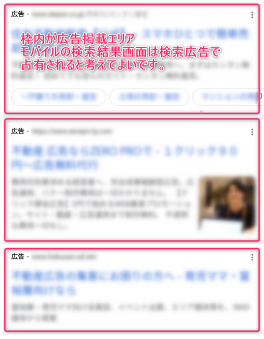 例えば、検索エンジンで「新築マンション」と検索した場合、新築マンション関連の広告が表示されます。