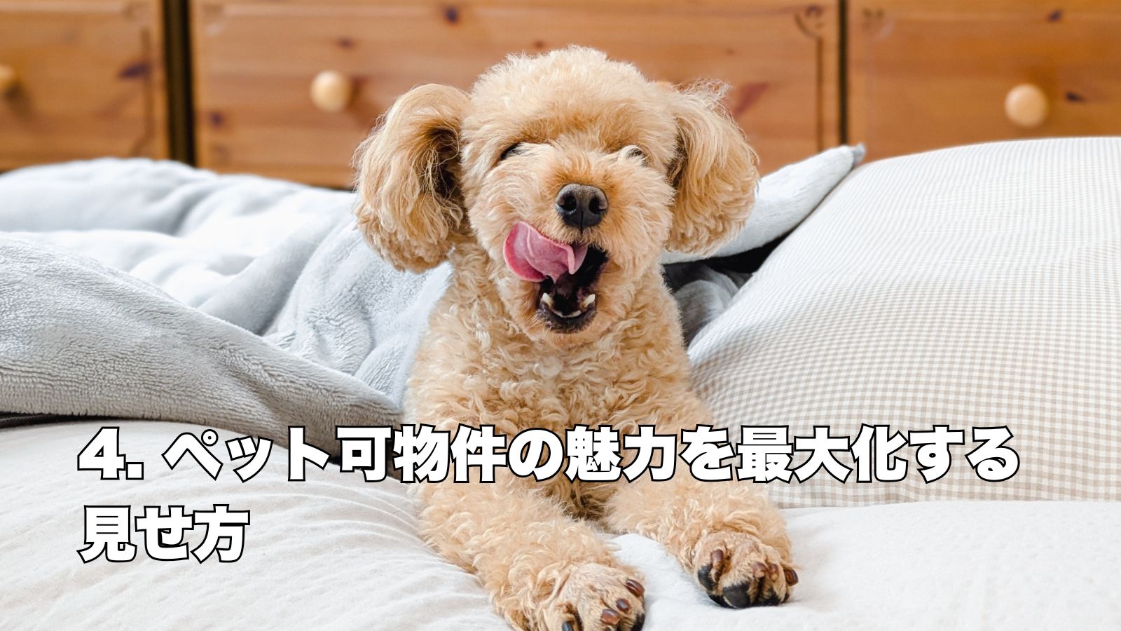 また、「駅から近い」ではなく「散歩ルートが豊富」「動物病院が近い」といったように、ペット視点に翻訳することで差別化が可能になります。