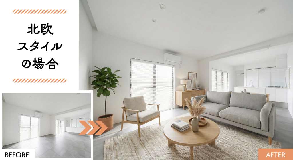 殺風景な写真が温かいリビングに変われば、ポータルサイトでの反響率は確実に向上します。