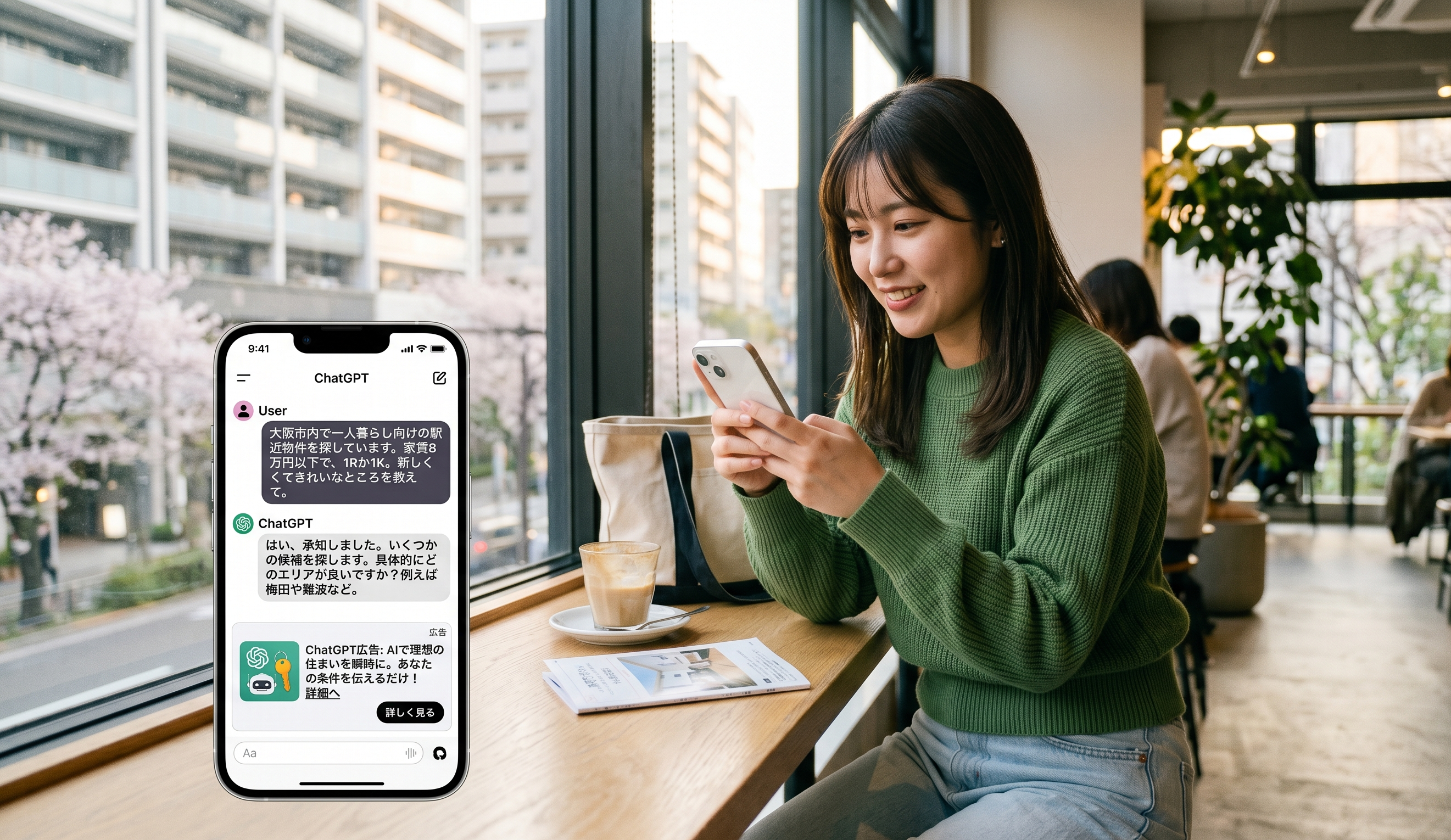 ChatGPT広告になれば、この悔しさが解消される可能性があります。なぜなら、ChatGPTはお客様の「どんな暮らしがしたいか」という会話の文脈を理解して広告を出すからです。「駅から少し歩いてもいいから、静かで日当たりの良い、おしゃれな部屋に住みたい」と相談するお客様に対して、先ほどのフルリノベーション物件の広告をピンポイントで表示してくれるようになるのです。これは、物件の「隠れた魅力」を伝える大チャンスと言えます。