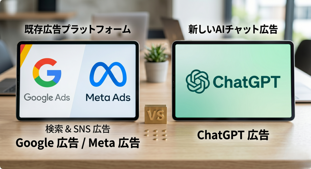 例えるなら、ものすごく優秀で知識が豊富な「新人の案内係」が、お客様の悩みに寄り添いながら、ベストな物件をスッと差し出してくれるような感覚です。アメリカのテストでは、旅行の相談をしたらおすすめのホテルが、買い物の相談をしたらおすすめの商品が、会話の延長線上で非常に自然に紹介されるようになっています。これがいわゆる「ChatGPT広告」の正体です。